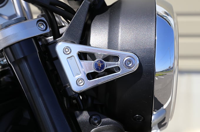 ネイキッドモデルの印象を決定づけるヘッドライト周辺を、上質にドレスアップする専用パーツです。アルミ削り出しならではの精緻な質感に加え、ワイバン・ロゴマークには伝統工芸の七宝焼きを採用。細部にまでこだわり抜いた仕上げが、マシン全体の存在感と高級感を格段に引き上げます。